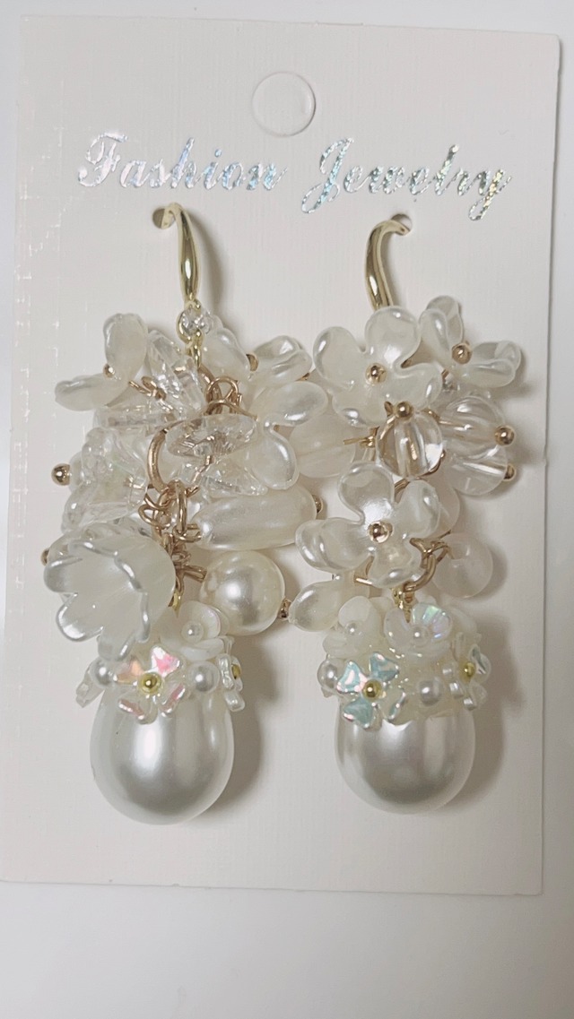 花開いた今を ロングピアス ゴージャスピアス ゆめかわピアス ハンドメイドピアス