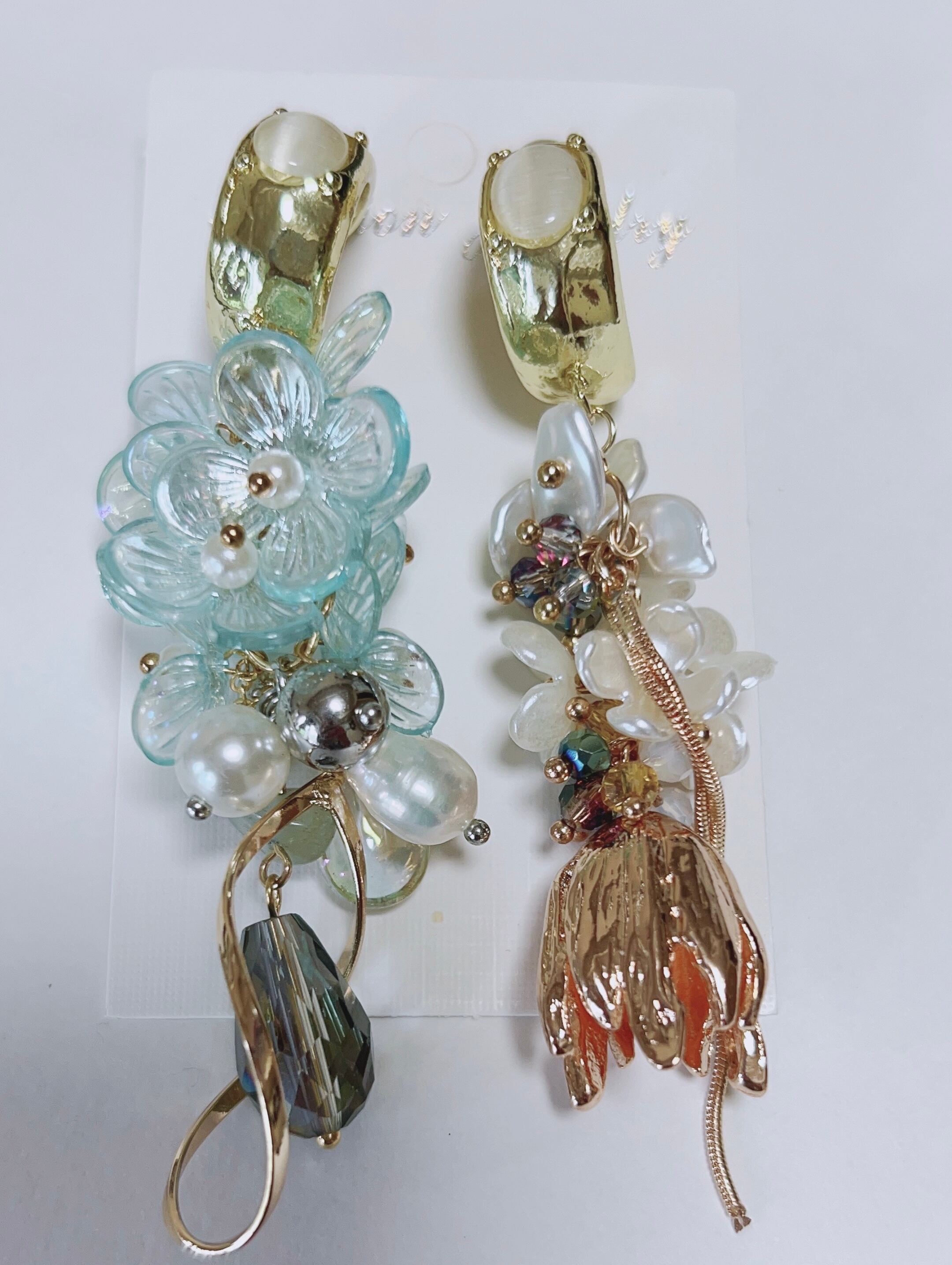 樹脂薔薇、パールチェーンを組み合わせて作った大人かわいい、ピアスになります。