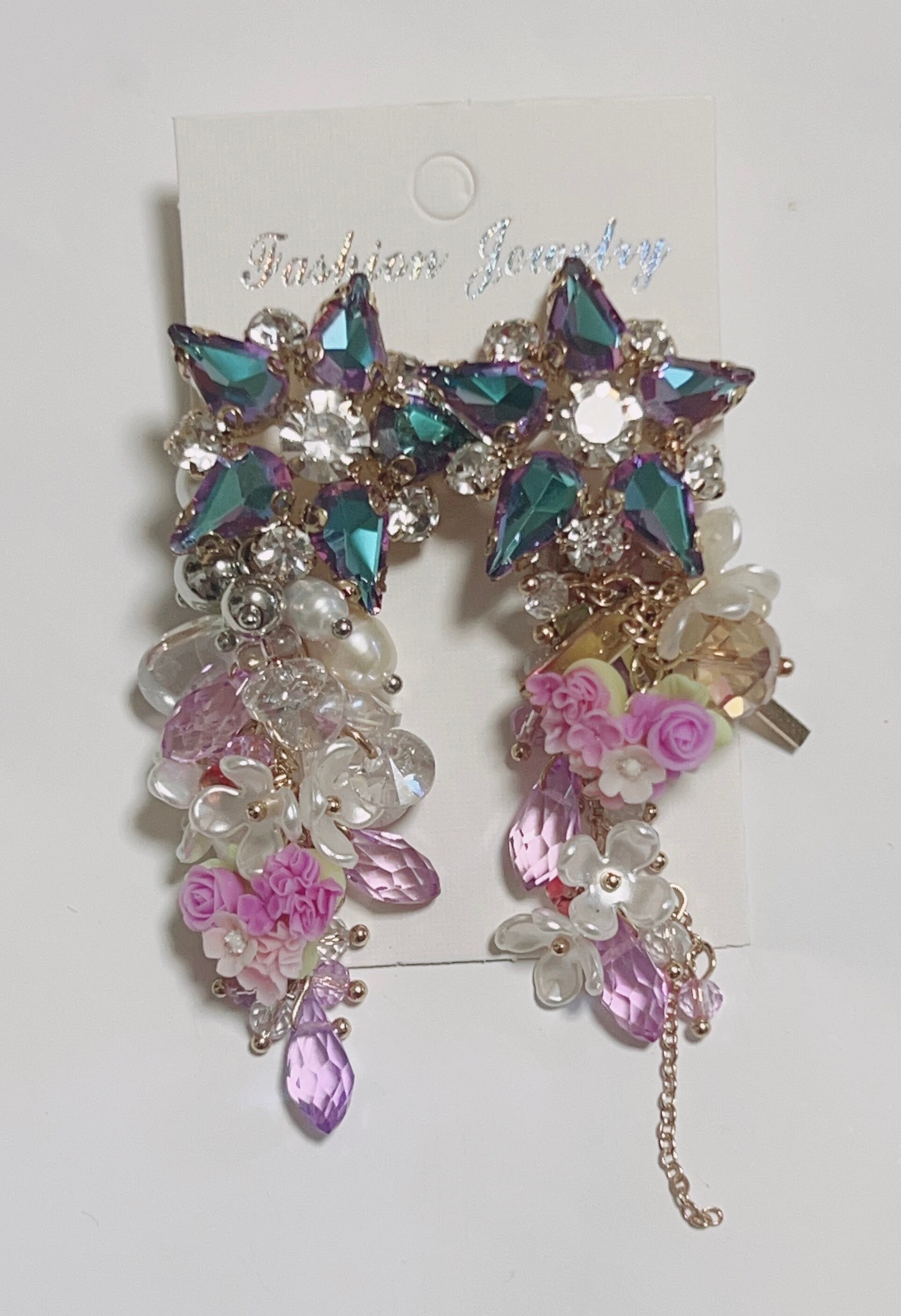 樹脂薔薇、パールチェーンを組み合わせて作った大人かわいい、ピアスになります。