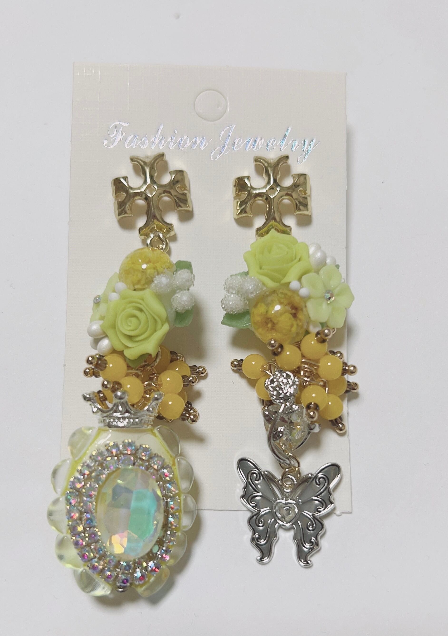樹脂薔薇、ゆめかわビーズを組み合わせて作った大人かわいい、ピアスになります。