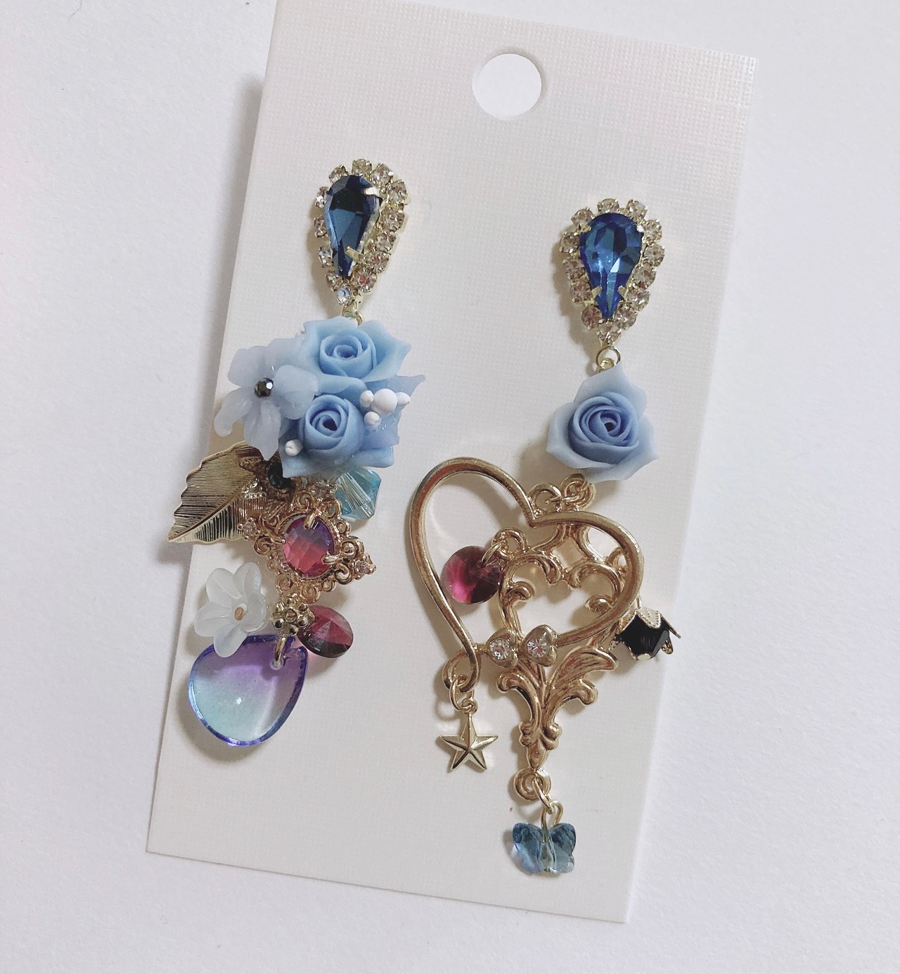 樹脂薔薇とスワロフスキーを使って仕上げたデザインのピアスですハンドメイドです イヤリングへの変更も可能です。 イヤリング変更はトップ部分がなくなります。また プラス100円かかります。 推しカラーに仕上げました。 1点ものになりますのでほかサイトで売れたら削除します