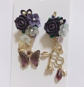 夜の幻 ハンドメイド ピアス スワロフスキー