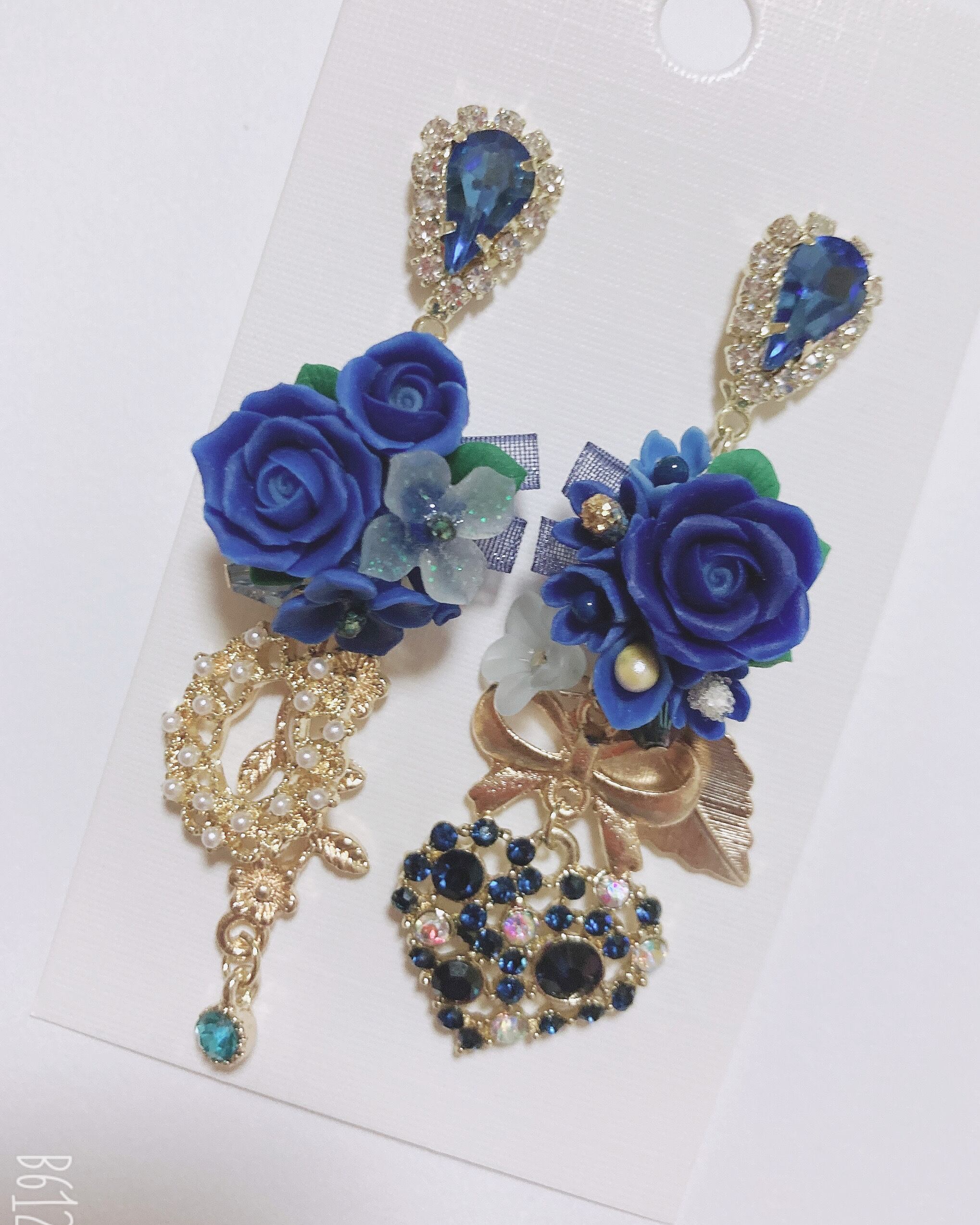 樹脂薔薇とスワロフスキーを使って仕上げたデザインのピアスですハンドメイドです イヤリングへの変更も可能です。 イヤリング変更はトップ部分がなくなります。また プラス100円かかります。 推しカラーに仕上げました。 1点ものになりますのでほかサイトで売れたら削除します