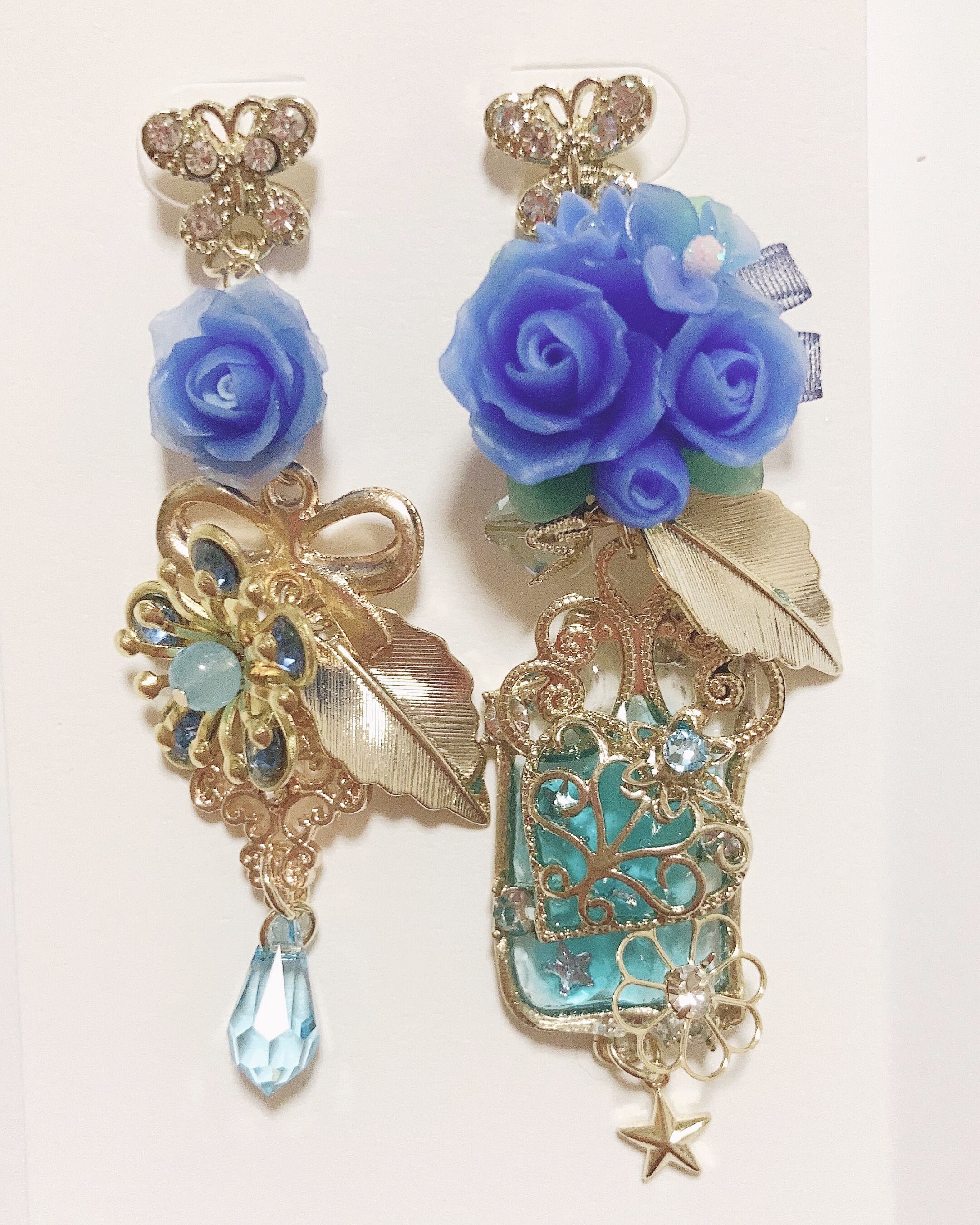 樹脂薔薇とスワロフスキーを使って仕上げたデザインのピアスですハンドメイドです イヤリングへの変更も可能です。 イヤリング変更はトップ部分がなくなります。また プラス100円かかります。 推しカラーに仕上げました。 1点ものになりますのでほかサイトで売れたら削除します
