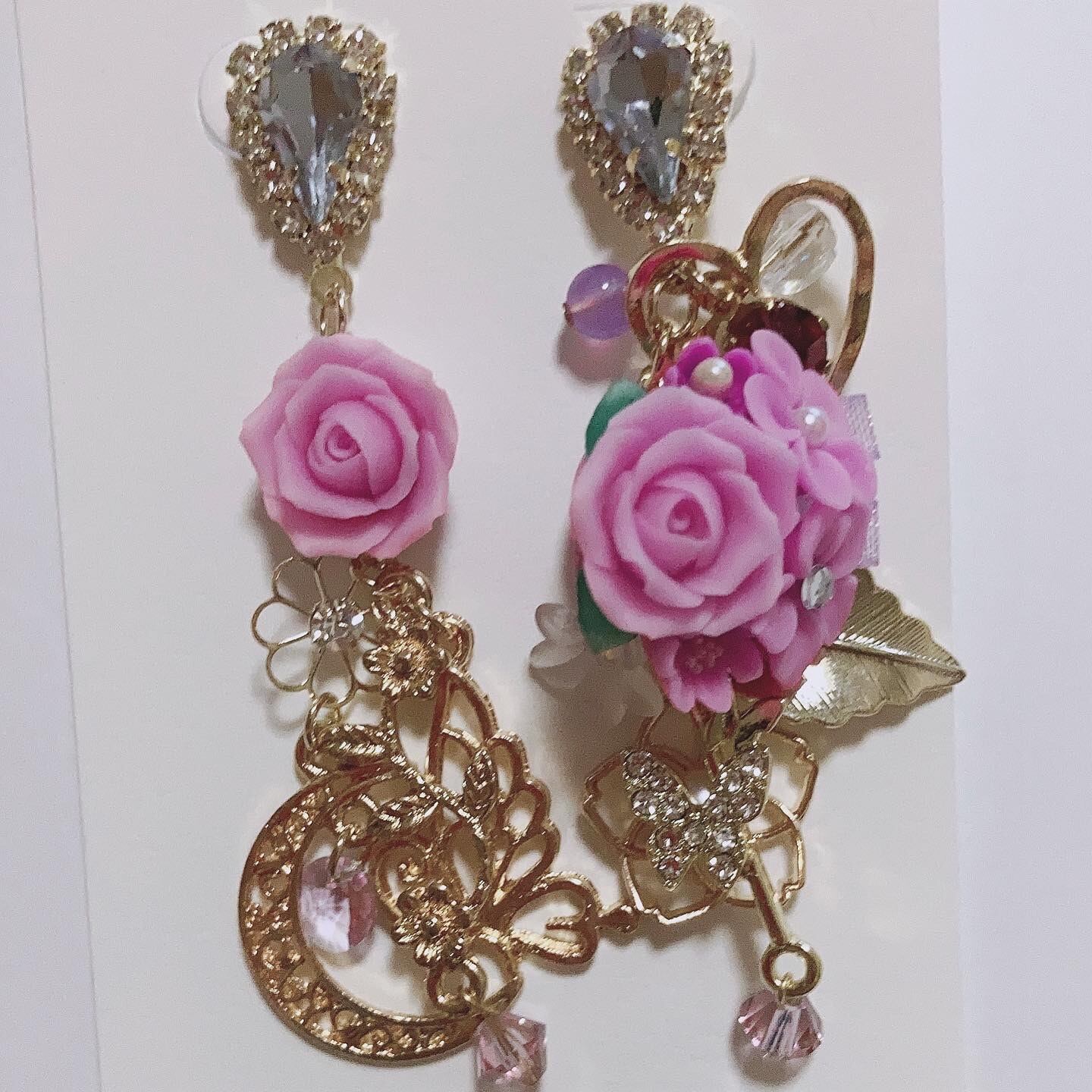 樹脂薔薇とスワロフスキーを使って仕上げたデザインのピアスですハンドメイドです イヤリングへの変更も可能です。 イヤリング変更はトップ部分がなくなります。また プラス100円かかります。 推しカラーに仕上げました。 1点ものになりますのでほかサイトで売れたら削除します