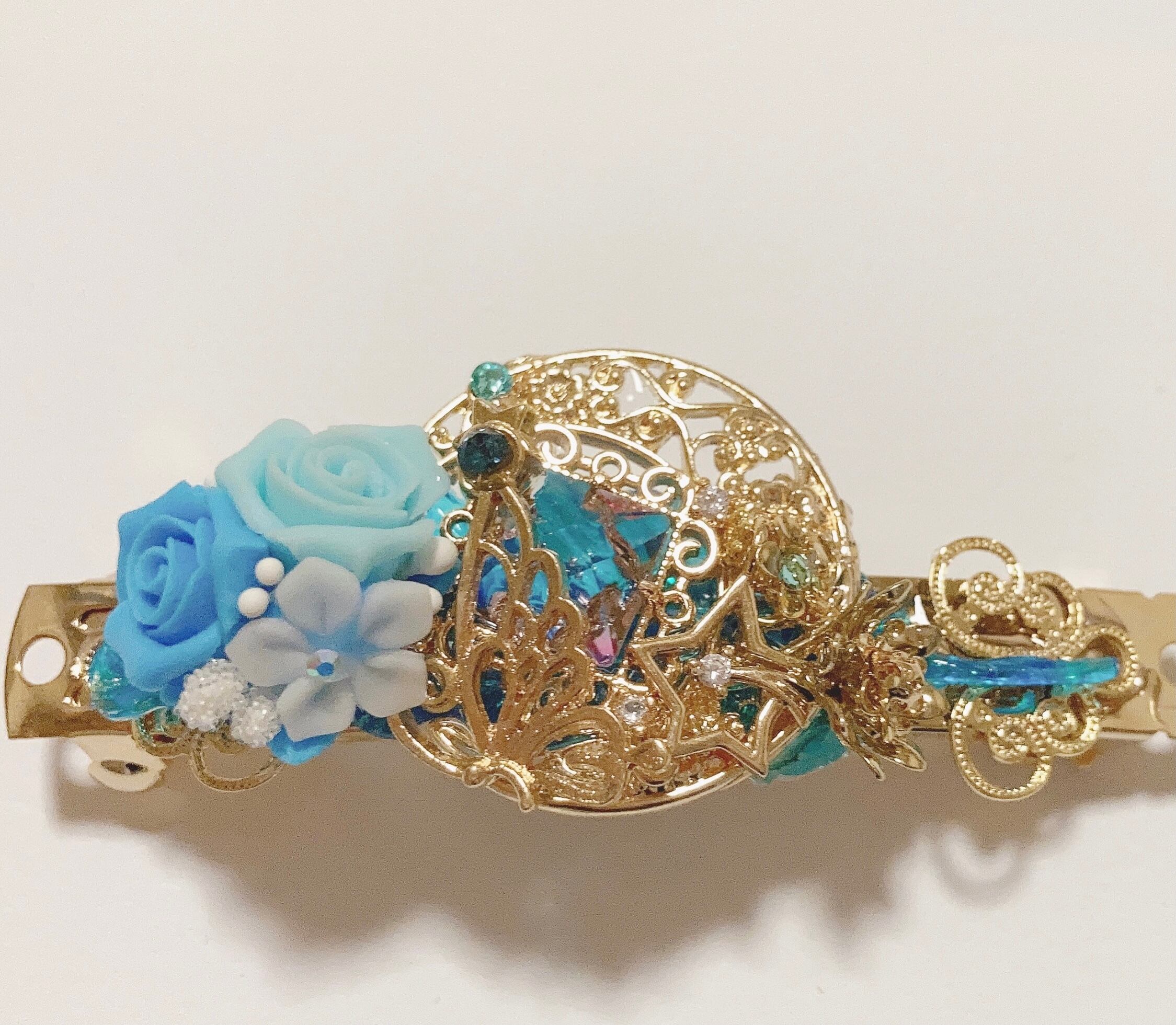 幻想の月明かり ハンドメイド スワロフスキー ヘアバレッタ