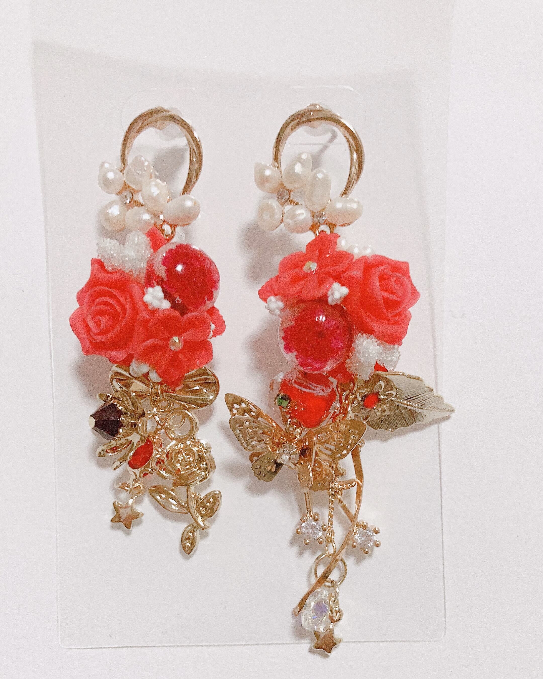 #ゆめかわいい#大ぶり#薔薇#ピアス