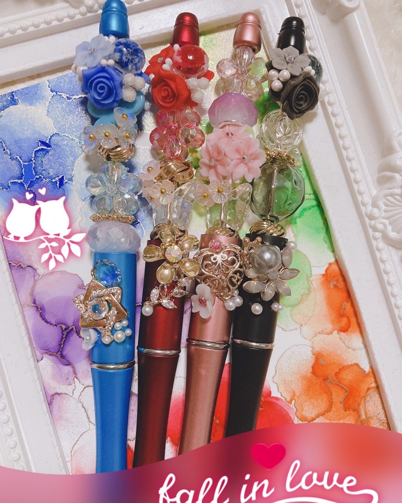 樹脂薔薇や樹脂桜、ジルコニア、スワロフスキーを使って仕上げました。