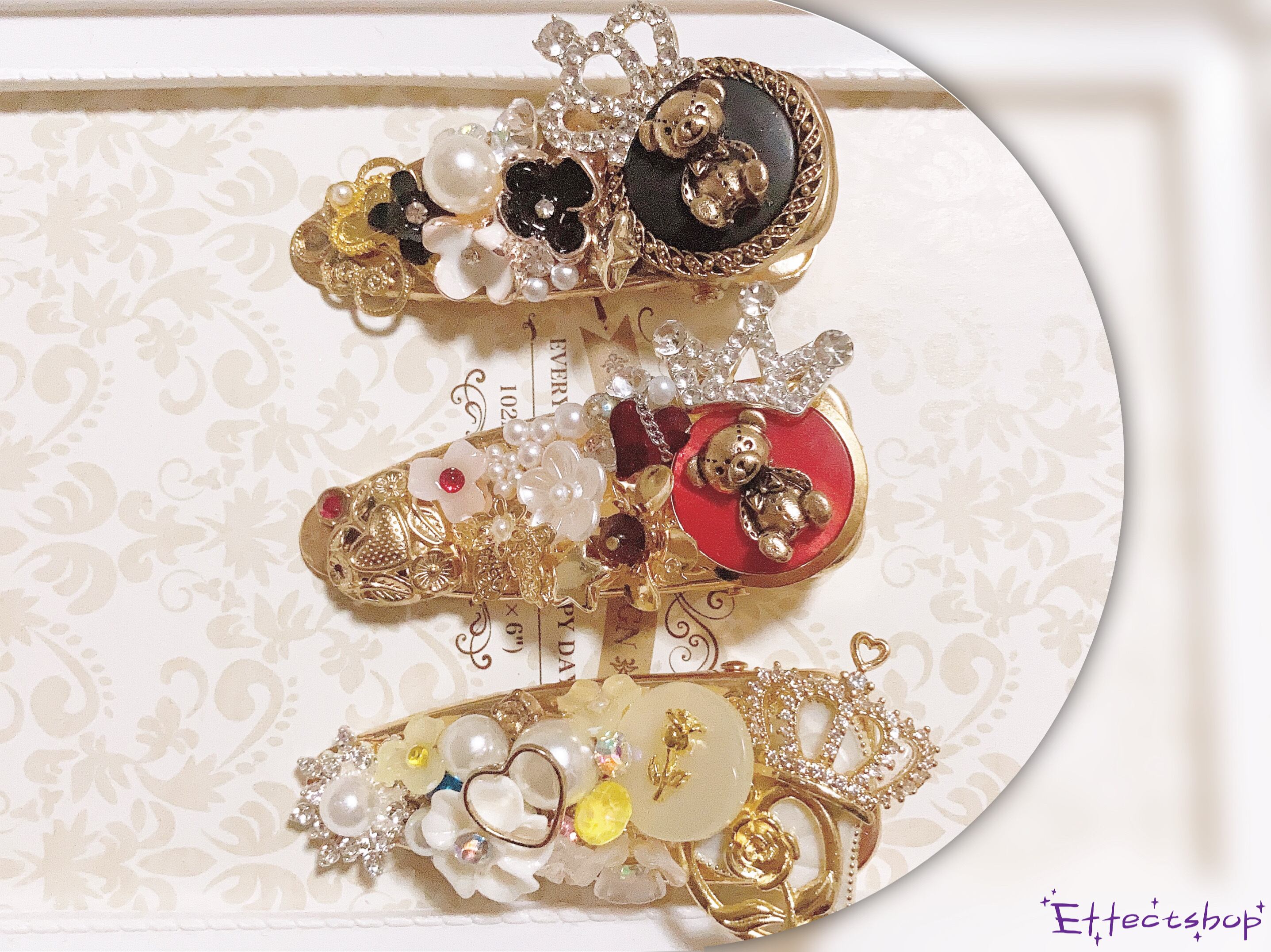 ティアラ風のボタンカボション ヘアクリップ バッククリップ