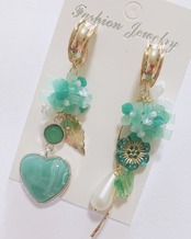 エスニック風なピアスになります(グリーンのハートは枠がシルバーです、気になる方は購入お控えください)