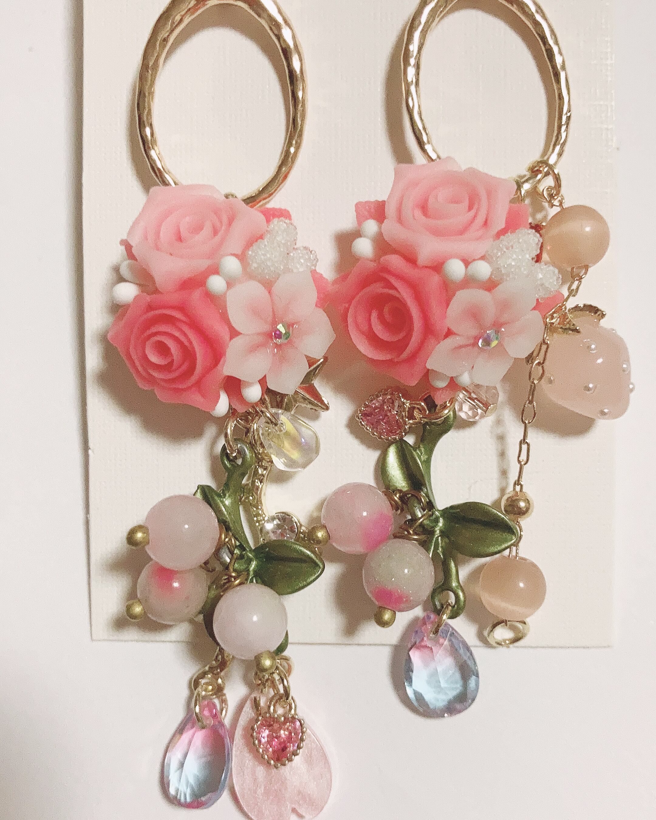 #ゆめかわいい#大ぶり#薔薇#ピアス