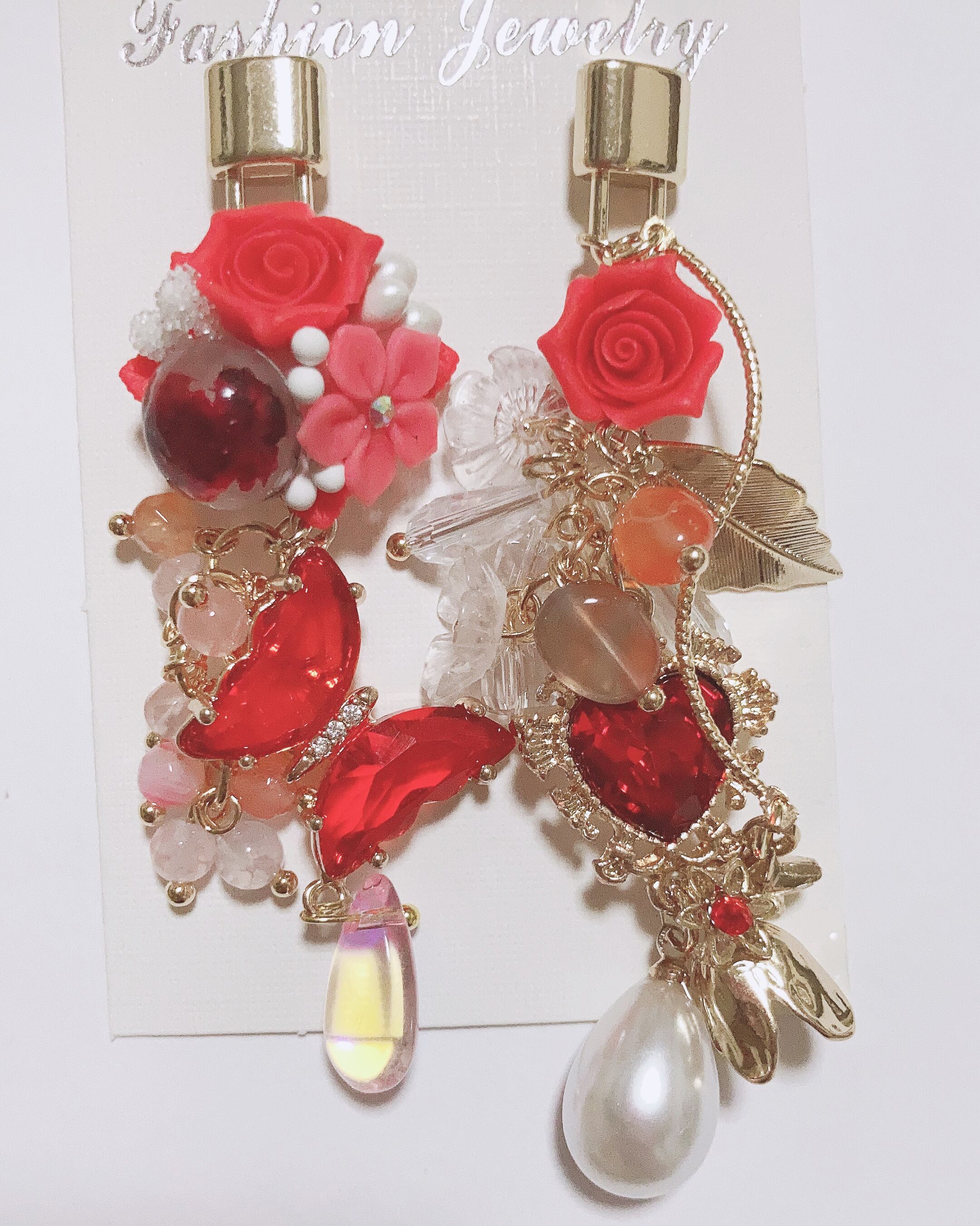 #ゆめかわいい#大ぶり#薔薇#クロスピアス