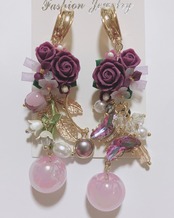 #ゆめかわいい#大ぶり#薔薇#クロスピアス