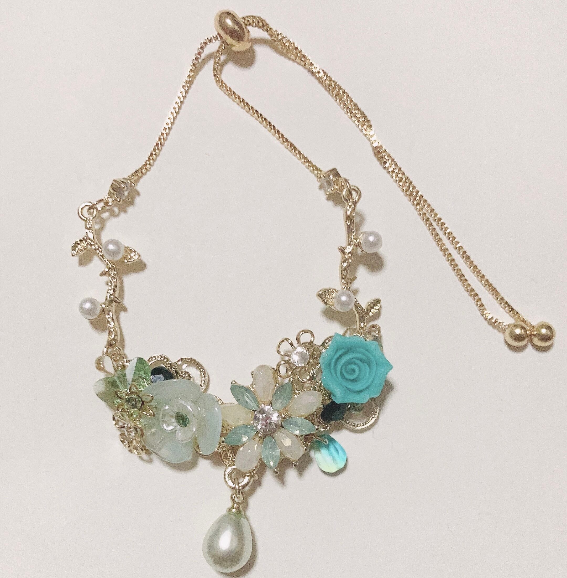 樹脂薔薇と透かしパーツのブレスレットです