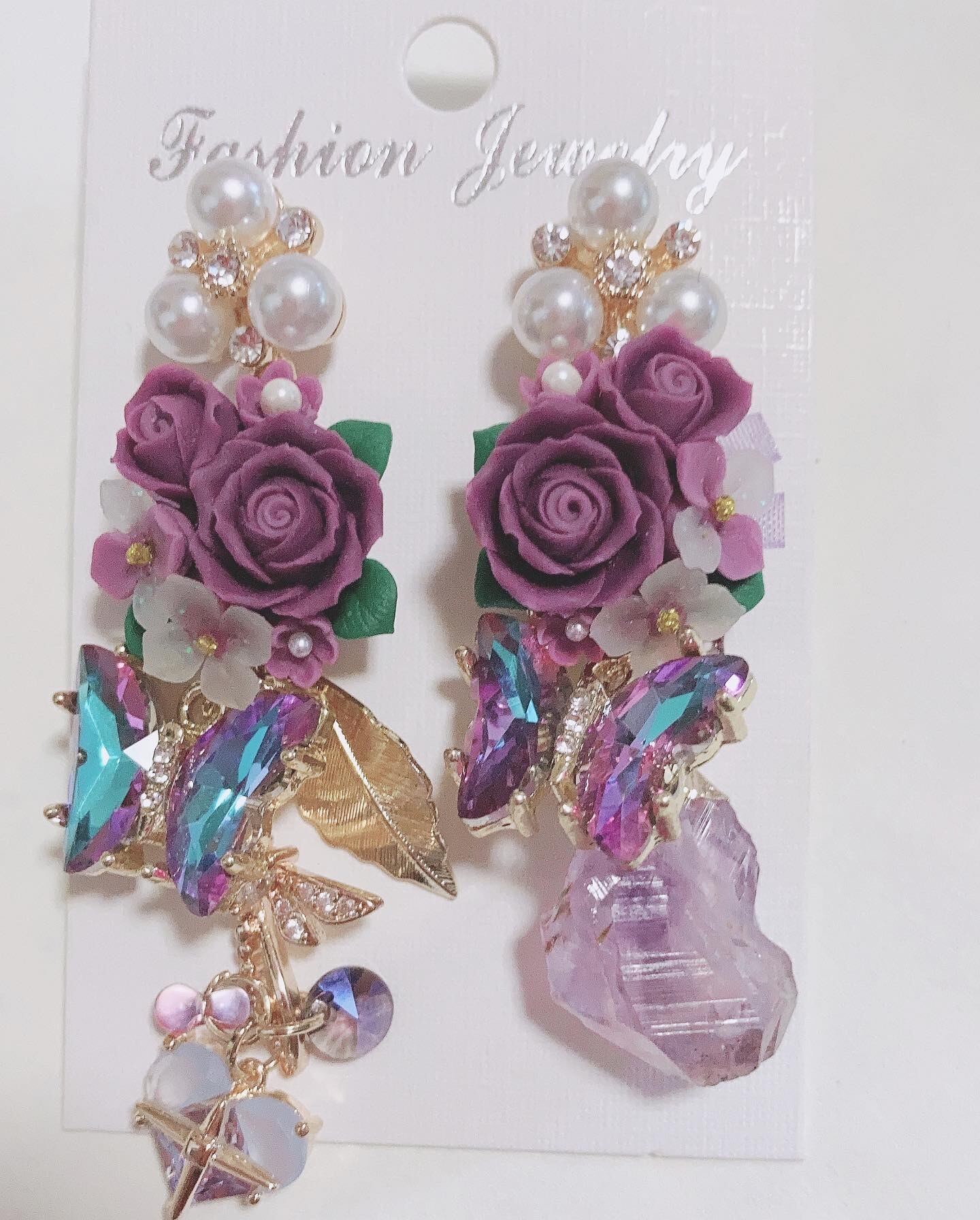 #ゆめかわいい#大ぶり#薔薇#ピアス