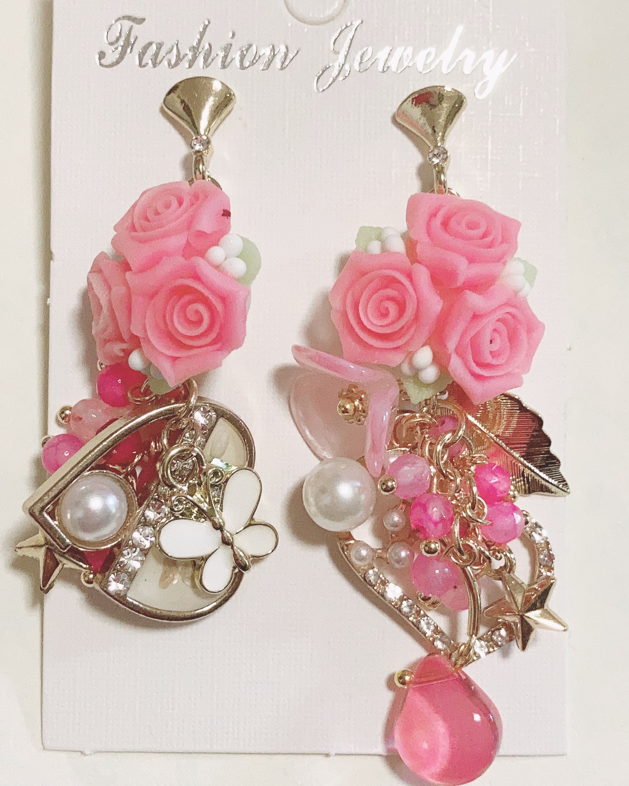 #ゆめかわいい#大ぶり#薔薇#天然石ピアス#