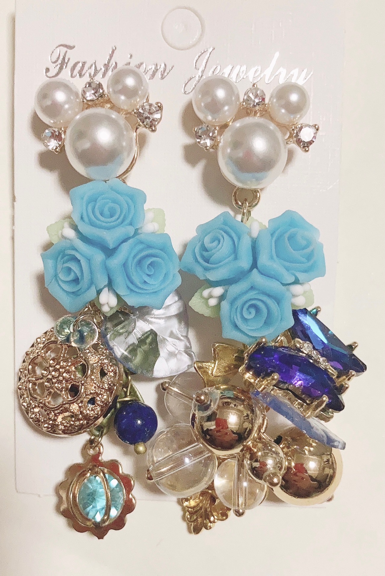 #ゆめかわいい#大ぶり#薔薇#天然石ピアス#