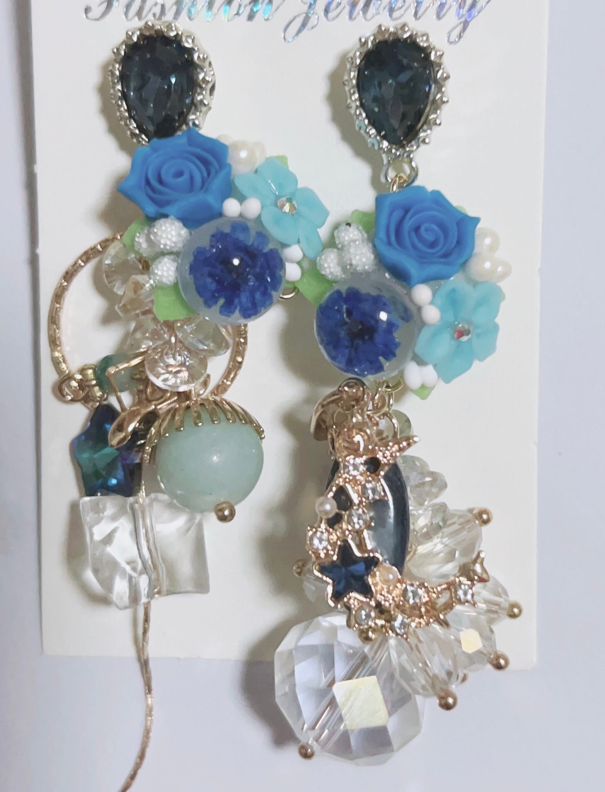 樹脂薔薇、しゃぼんビーズ、天然シェル(染色)ビーズ組み合わせて作った大人かわいい、ピアスになります。