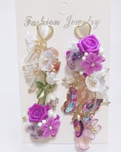 樹脂薔薇、天然石、ガラスカットビーズを使って作りました