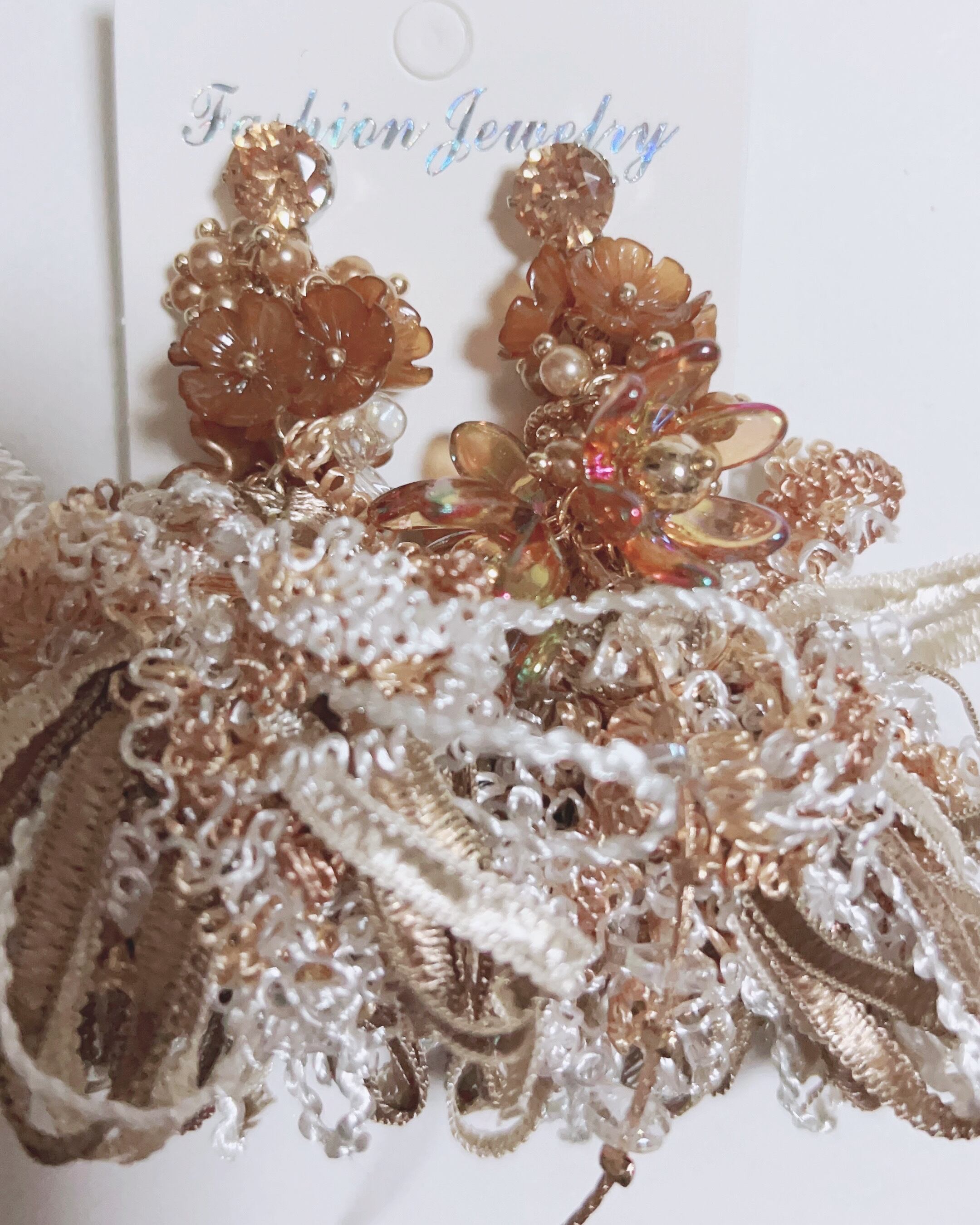 ビーズ、タッセル組み合わせて作った大人かわいい、ピアスになります。