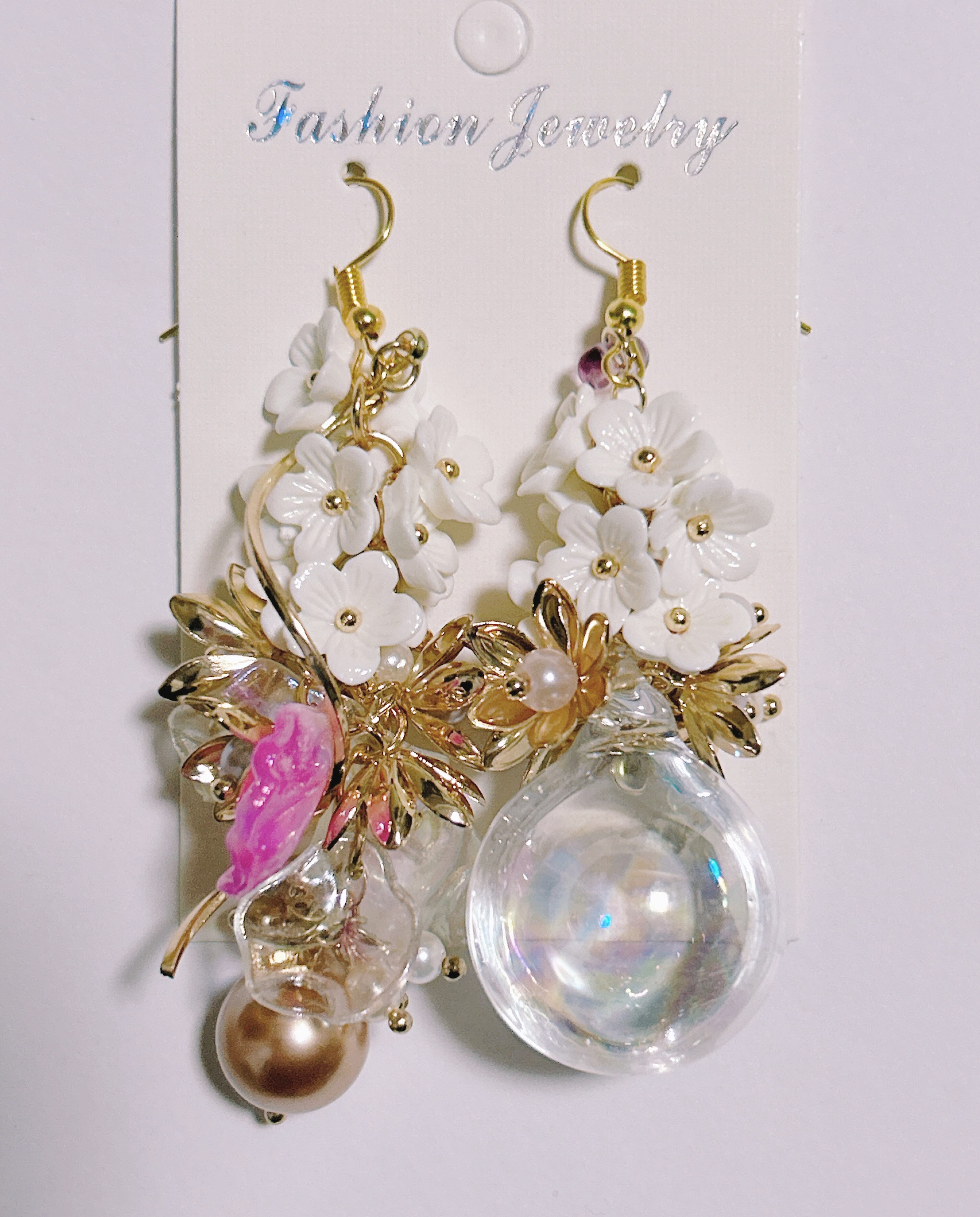 月明かりの透明 フックピアス ロングピアス ゴージャスピアス 水入りピアス