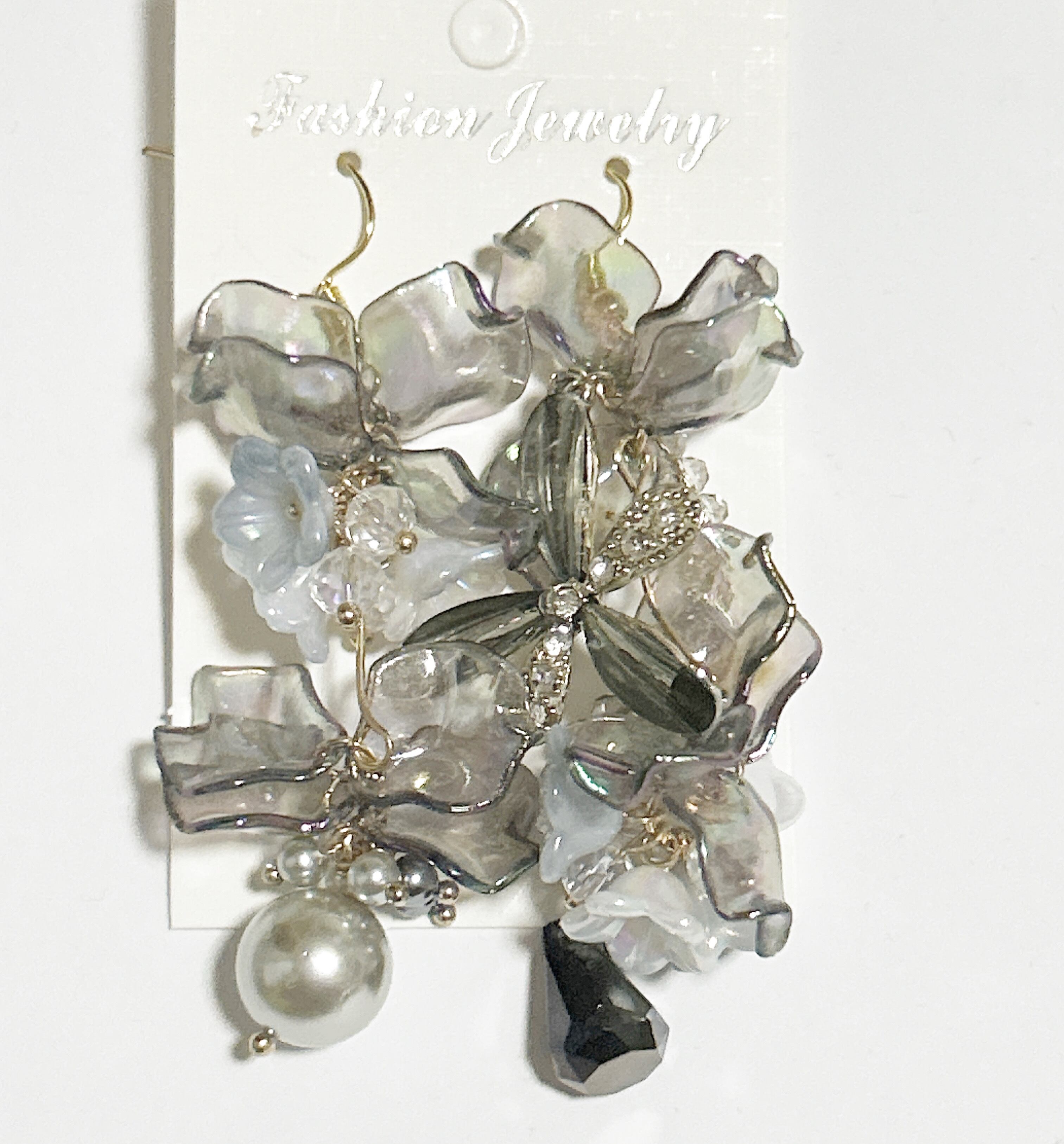 ビーズ、アクリルパーツを組み合わせて作った大人かわいい、ピアスになります。