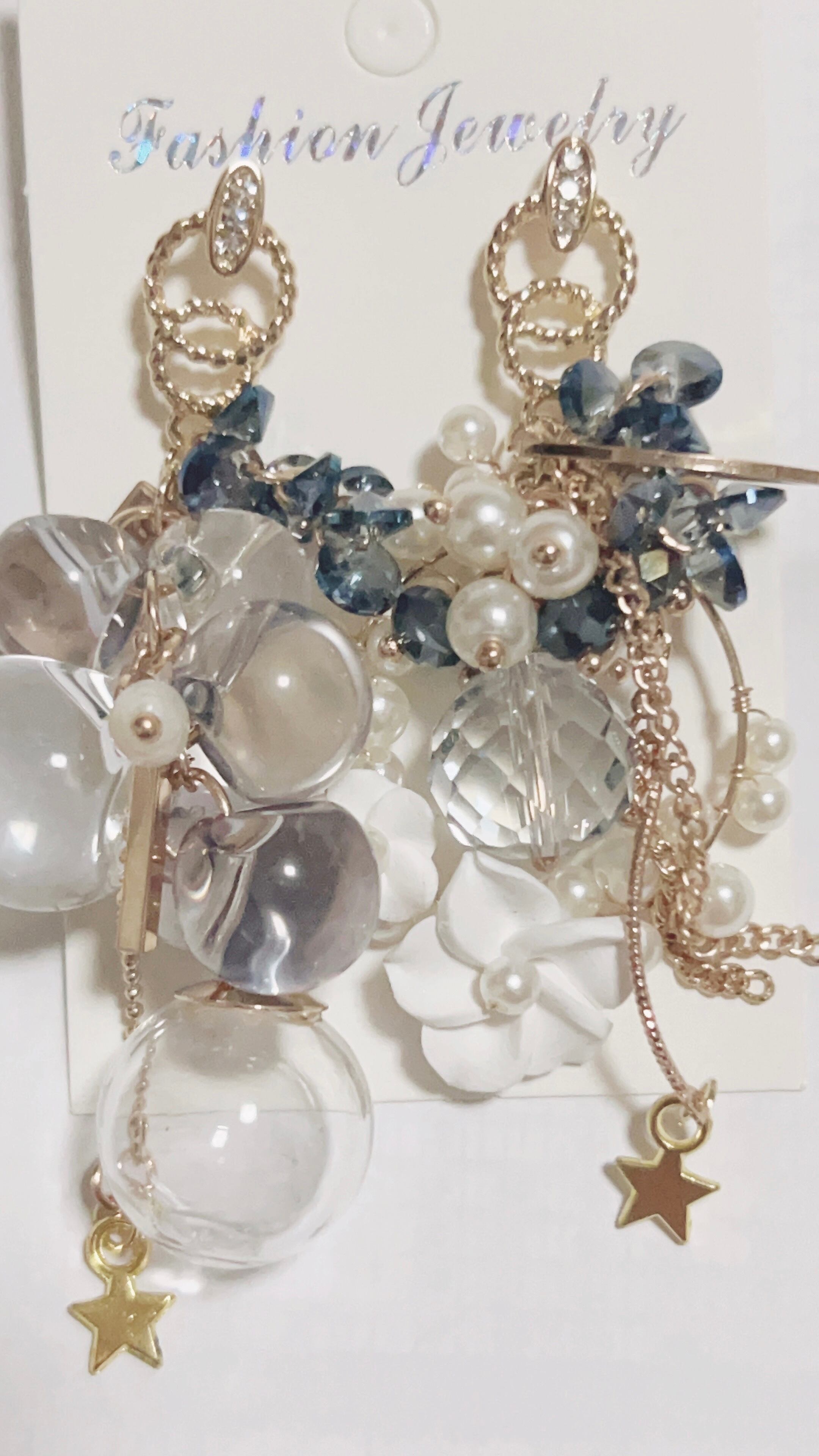 星の囁き ロングピアス 大ぶりピアス ガラスピアス